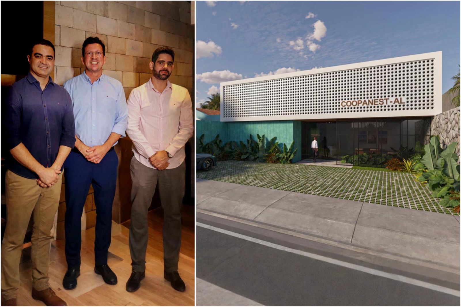 “A nova sede garante um salto na estrutura fisica da cooperativa, fortalecendo a gestão da Coopanest AL, expandindo a nossa capacidade de fechar parcerias e contratos que beneficiem nossos cooperados e garantam maior força e presença da categoria em hospitais do Estado”, diz o médico anestesiologista alagoano Rodrigo Temoteo, presidente da Coopanest-AL (de azul, na foto acima), que lidera o processo de modernização da gestão da cooperativa da entidade ao lado dos anestesiologistas André Felipe (da diretoria financeira) e Nélio Monteiro (diretor administrativo).